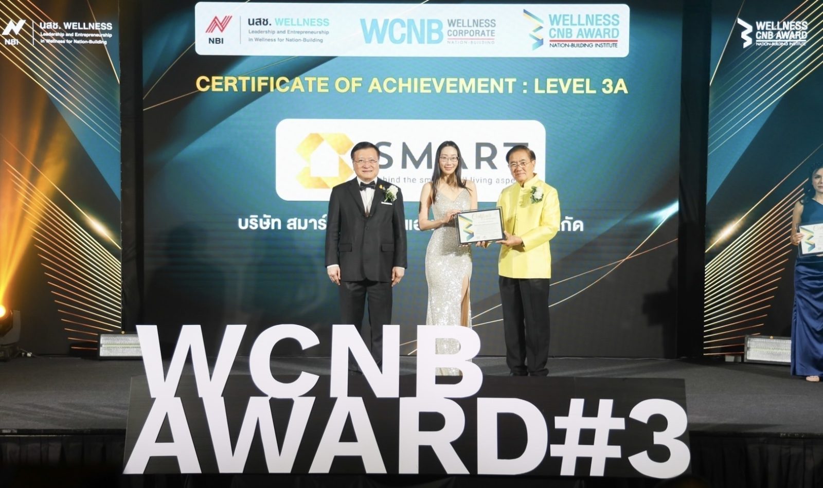 บริษัท สมาร์ท เซอร์วิส แอนด์ แมเนจเม้นท์ จำกัด ผู้นำด้านการบริหารนิติบุคคลในประเทศไทย ที่มีประสบการณ์มากว่า 27 ปี นำโดย นางสาวสปัญญ์ ปาลีวงศ์ (กลาง) ผู้อำนวยการฝ่ายพัฒนาธุรกิจ บริษัท สมาร์ท เซอร์วิส แอนด์ แมเนจเม้นท์ จำกัด ตอกย้ำความเป็นผู้นำ ด้วยการคว้ารางวัล “องค์กรที่มีสุขสภาพ Wellness ระดับ Achievement 3A” จากสถาบันการสร้างชาติในโครงการ “การพัฒนาสุขสภาพขององค์กรเพื่อการสร้างชาติ Wellness Corporate Nation-Building (Wellness CNB) รุ่นที่ 3” โดยมี ศ. เกียรติคุณ นพ.รัชตะ รัชตะนาวิน อดีตรัฐมนตรีว่าการกระทรวงสาธารณสุข (ขวา) และ ศ.ดร.เกรียงศักดิ์ เจริญวงค์ศักดิ์ (ซ้าย) ประธานสถาบันการสร้างชาติ (ซ้าย) ให้เกียรติเป็นประธานในการมอบรางวัล