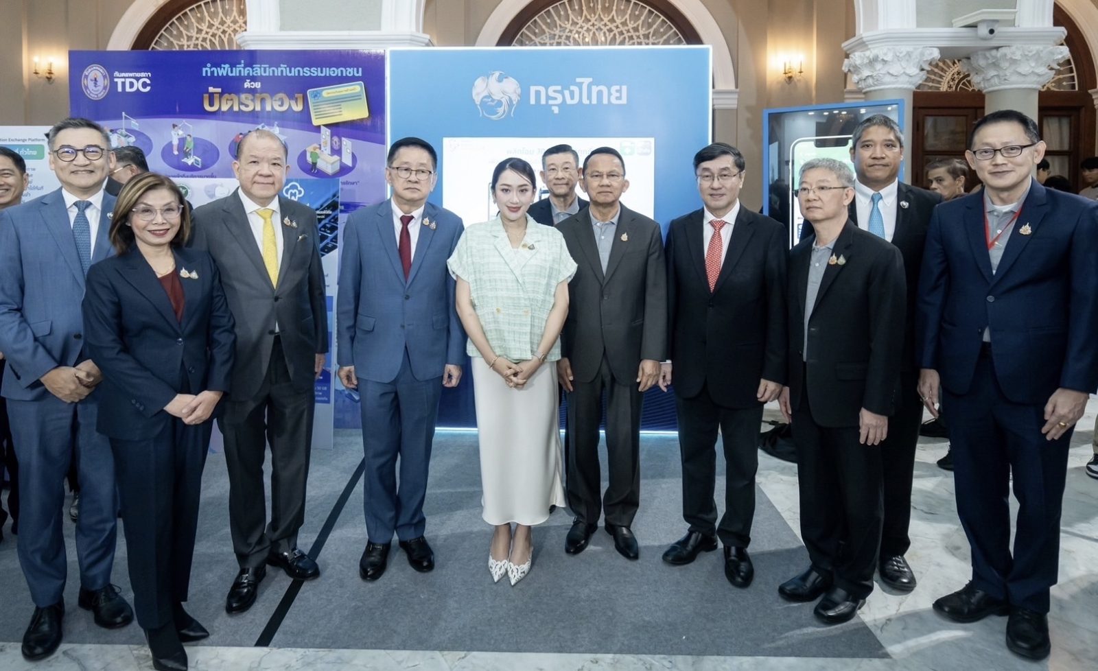 นางสาวแพทองธาร ชินวัตร นายกรัฐมนตรี ให้เกียรติเยี่ยมชมนวัตกรรม Krungthai Digital Health Platform ที่บูธธนาคารกรุงไทย ในงาน “30 บาทรักษาทุกที่ เพื่อคนไทยสุขภาพดีถ้วนหน้า ครอบคลุมทั่วประเทศ” จัดโดย สำนักงานหลักประกันสุขภาพแห่งชาติ (สปสช.) ตามโครงการขับเคลื่อน นโยบาย 30 บาทรักษาทุกที่ด้วยบัตร ประชาชนใบเดียวของรัฐบาล เพื่อยกระดับบริการสุขภาพให้กับประชาชนผู้มีสิทธิบัตรทอง ขยายพื้นที่ครอบคลุมทั่วไทย 77 จังหวัด เริ่ม 1 มกราคม 2568 โดยมี นายธวัชชัย ชีวานนท์ ประธานผู้บริหาร Product & Business Solutions ให้การต้อนรับ ณ ตึกสันติไมตรี ทำเนียบรัฐบาล