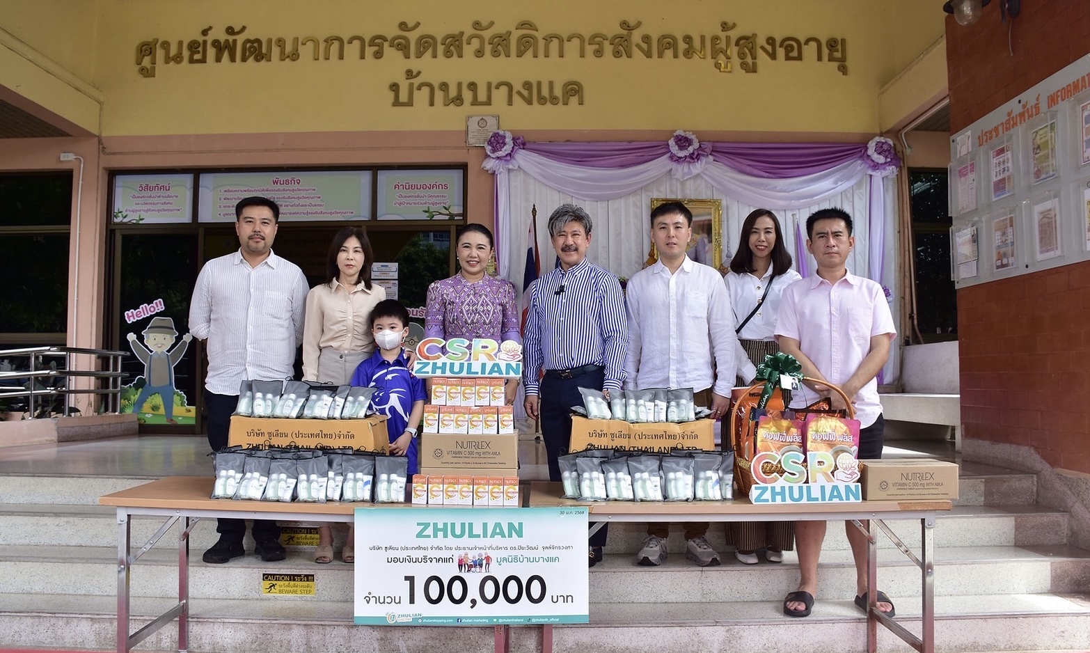 ในกิจกรรมดังกล่าว ซูเลียนได้ร่วมสมทบทุนบริจาคเงินจำนวน 100,000 บาท เพื่อสนับสนุนภารกิจของมูลนิธิในการดูแลผู้สูงอายุ รวมถึงจัดเลี้ยงอาหารกลางวันให้กับผู้สูงวัยในบ้านบางแค พร้อมมอบสิ่งของอุปโภคบริโภคที่จำเป็น อาทิ ผลิตภัณฑ์ดูแลสุขภาพส่วนบุคคล วิตามินซี และของใช้ในชีวิตประจำวันอื่น ๆ โดยทั้งหมดนี้ล้วนเป็นสิ่งที่คัดสรรมาอย่างตั้งใจ เพื่อเสริมสร้างสุขภาวะและคุณภาพชีวิตที่ดีให้กับผู้สูงอายุ ซึ่งถือเป็นกลุ่มประชากรที่ควรได้รับการใส่ใจและดูแลเป็นพิเศษ